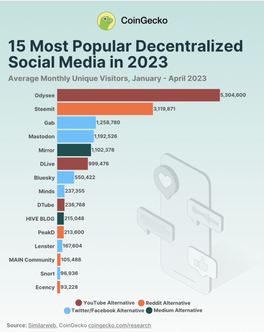 Eles capturaram quase 44% da participação do usuário por visitantes únicos mensais médios. Da mesma forma, Steemit, PeakD, MAIN Community e Ecency oferecem fóruns descentralizados semelhantes ao Reddit, servindo como plataformas para discussões e compartilhamento de conteúdo.