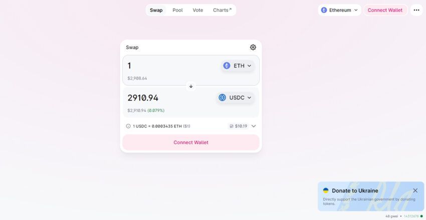 A Uniswap adicionou o recurso de doação à página inicial na terça-feira (1). Ele permite que os usuários troquem qualquer token ERC-20 por ETH, que será enviado ao governo ucraniano em uma única transação. A iniciativa faz parte de um esforço conjunto da comunidade de criptomoedas para ajudar a Ucrânia após o país ser invadido pelo exercito russo.