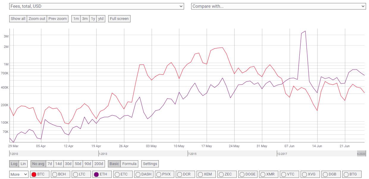 De acordo com a Coinmetrics , atualmente as taxas de rede Ethereum são maiores que de Bitcoin, e têm sido assim na maior parte do mês. A última vez que as taxas do Ethereum foram superiores às do Bitcoin foi por duas semanas consecutivas em julho de 2018.