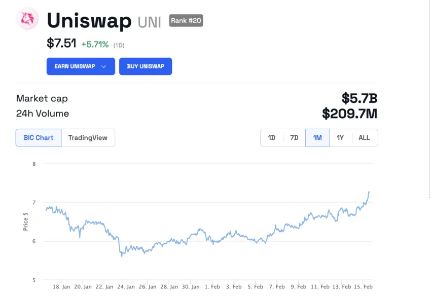 Em meio a esses desenvolvimentos, o token nativo da Uniswap mostrou uma ação de preço positiva. No momento da escrita deste artigo, ele está sendo negociado a US$ 7,51, após subir quase 6% nas últimas 24 horas. Embora a DEX tenha anunciado dados provisórios em 15 de fevereiro de 2024, ela disponibilizou publicamente o rascunho do código V4 para feedback no ano passado.