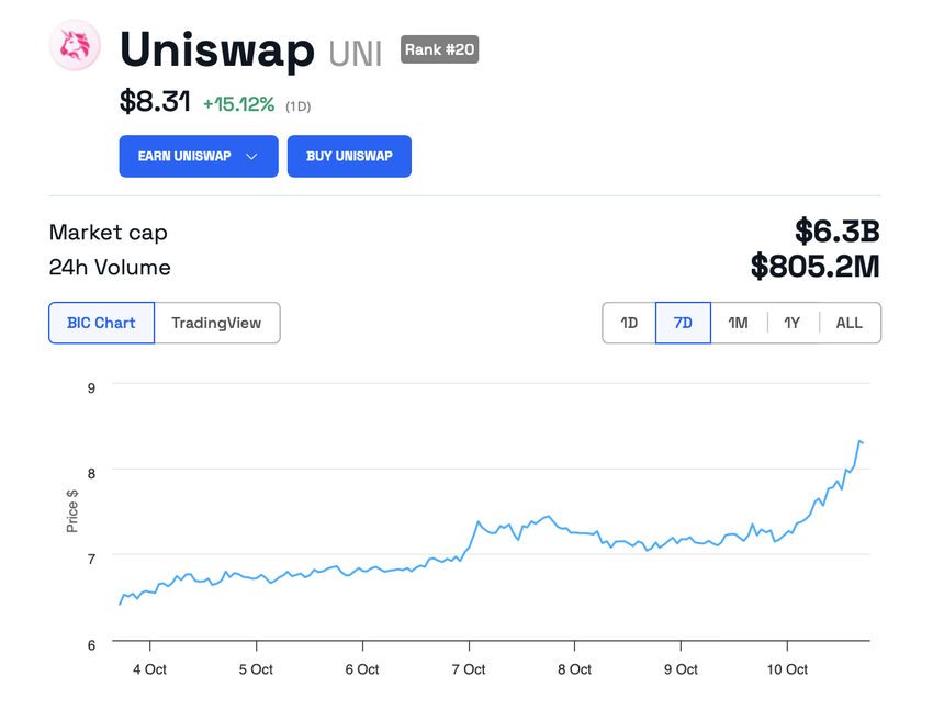 De acordo com dados do BeInCrypto, o token UNI da Uniswap subiu 15% nas últimas 24 horas. Apesar desse salto, a altcoin ainda não se recuperou totalmente das batalhas legais que a empresa enfrentou com a SEC no início deste ano.