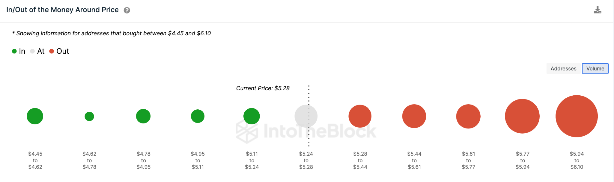 Uma análise dos dados do In/Out of The Money Price mostra que o preço da UNI pode se recuperar em breve acima de US$ 6,0. No entanto, os touros devem primeiro escalar a pressão de venda potencial de 9.400 investidores que compraram 6 milhões de tokens por cerca de US$ 5,38.