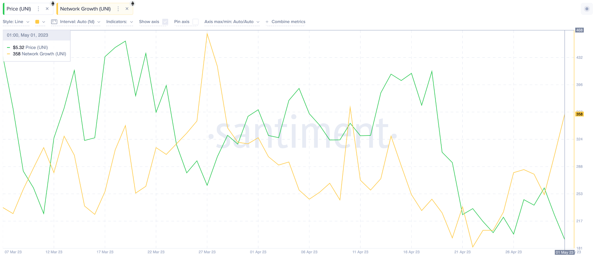 Outro fator crucial que contribui para as atuais perspectivas otimistas é o recente aumento no número de novos usuários ingressando na rede. Os dados on-chain mostram que o crescimento da Uniswap aumentou constantemente nos últimos 10 dias.