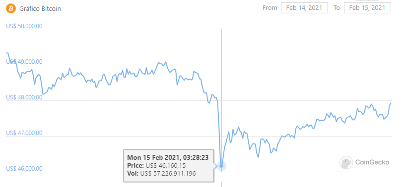 Em menos de duas horas nesta madrugada, o Bitcoin caiu de cerca de US$ 48.800 para US$ 45.100, segundo dados do portal Coingecko. Em exchanges de maior volume, como é o caso da Binance, por exemplo, o preço do Bitcoin alcançou a casa dos US$ 45.700. Dessa forma, traders comprados em preços muito acima desses níveis acabaram sendo liquidados.