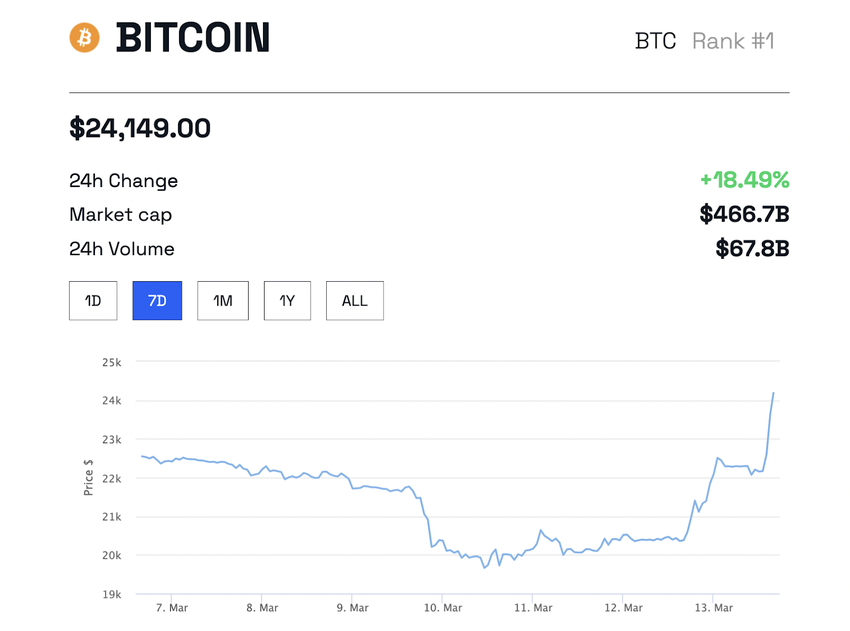 Junto com o USDC, o mercado cripto mais amplo também se recuperou das baixas. Até o momento, o Bitcoin está sendo negociado a uma alta mensal de US$ 24.149, um aumento de mais de 18% nas últimas 24 horas.