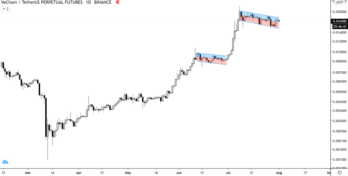 O trader de criptomoeda @TeddyCleps postou um gráfico da VET que mostra um canal paralelo descendente. Um canal semelhante que foi criado na segunda quinzena de junho causou o movimento ascendente que levou à alta atual. Para determinar se as mesmas coisas acontecerão desta vez, precisamos examinar mais de perto o movimento dos preços no curto prazo.