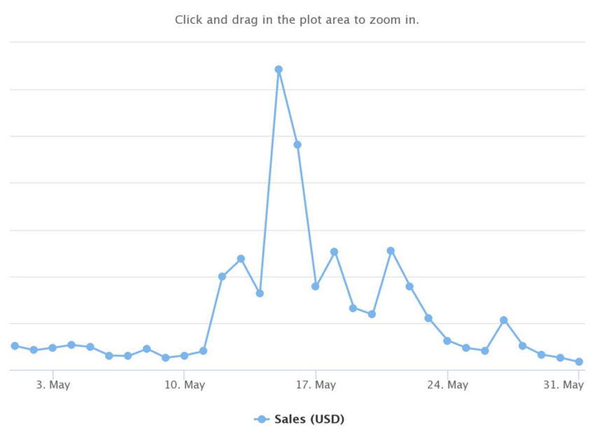 O volume de vendas aumentou com os preços das criptomoedas em maio de 2021. Durante o mês, as vendas globais de fan tokens atingiram uma alta histórica de US$ 9,43 bilhões e corresponderam a uma capitalização de mercado de US$ 210,38 milhões.