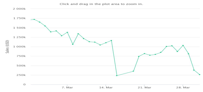 Embora esse número pareça impressionante, o volume total de vendas do jogo P2E em março foi inferior ao montante visto em fevereiro.