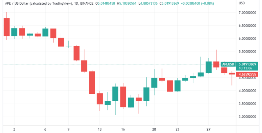 O APE abriu junho com um preço de negociação de US$ 6,76, atingiu uma alta mensal de US$ 7, testou uma baixa mensal de US$ 3,09 e fechou o mês em US$ 4,62. No geral, isso equivale a uma queda de 31% entre o preço de abertura e fechamento do mês.