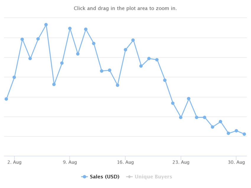 A maior parte deste volume veio do jogo Axie Infinity, maior da categoria P2E. Outros meses que fizeram contribuições significativas para as vendas totais da Ronin foram julho (US$ 666,17 milhões), setembro (US$ 518,87 milhões), outubro (US$ 545,79 milhões) e novembro de 2021 (US$ 754,76 milhões).