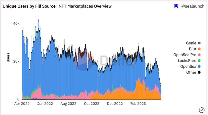 Da mesma forma, a contagem de usuários únicos também está em uma mínima anual hoje. As plataformas NFT registraram 4.265 usuários únicos, uma baixa que não acontecia desde julho de 2021.