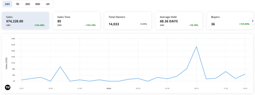Como resultado do aumento do volume de vendas, o preço mínimo da coleção apresentou uma tendência semelhante. O preço do NFT mais barato no grupo após um aumento de 4,3% é de 0,47 ETH. Isso equivale a US$ 908 a preços atuais. Enquanto isso, o valor de mercado dos NFTs também aumentou 7% para 21.150 ETH.