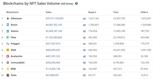 A Ronin fica atrás apenas do Ethereum no ranking de volume de vendas de NFT com mais de US$ 4 bilhões.