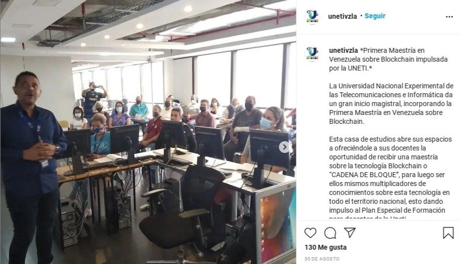A Universidade Nacional Experimental de Telecomunicações e Tecnologia da Informação da Venezuela (UNETI) anunciou a implantação do primeiro mestrado de blockchain do país.