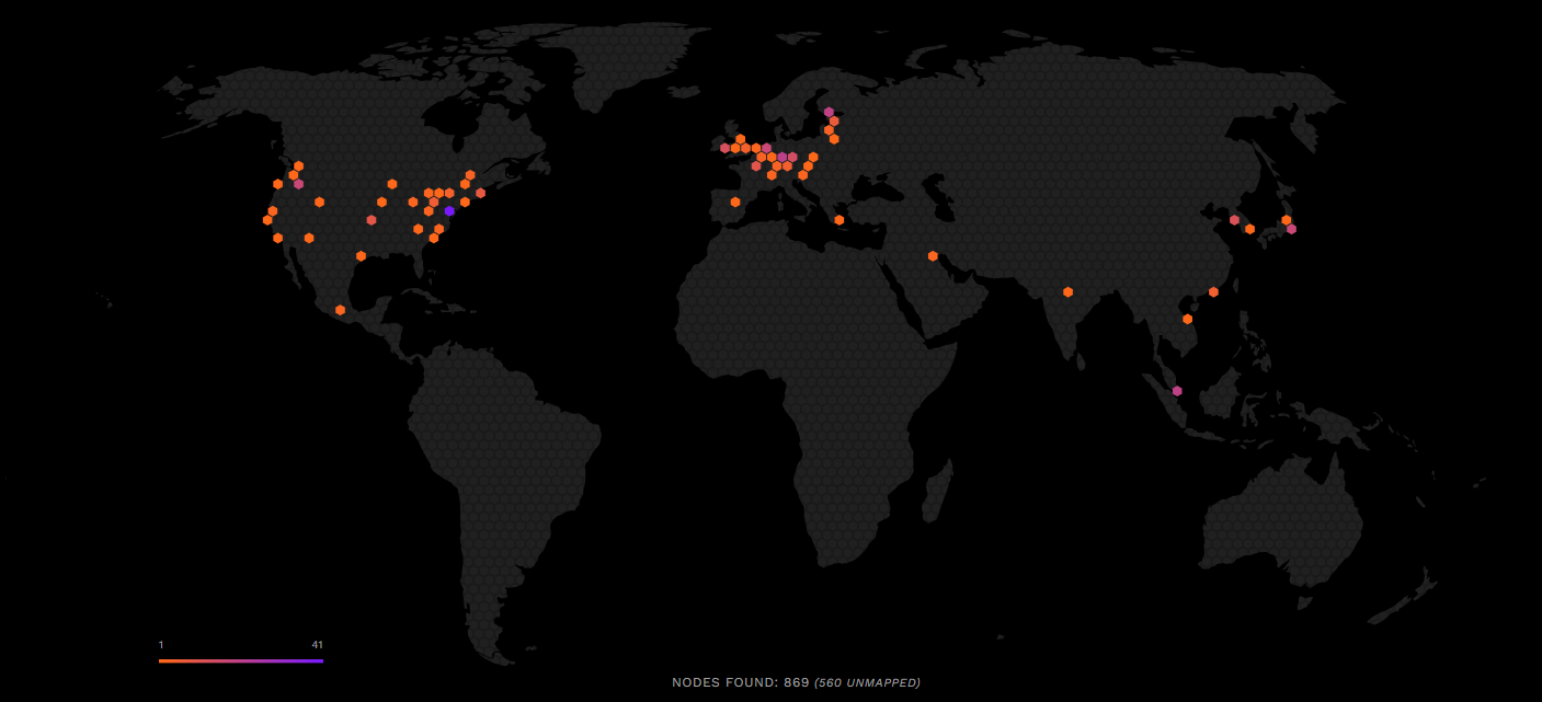 Compare isso com outros ativos líderes: o Bitcoin tem quase 22 mil nós, o Ethereum tem 11 mil, e a Solana tem 4.700.