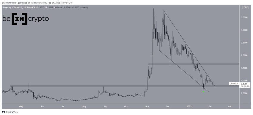 Loopring (LRC) está dentro de uma cunha de baixa desde 25 de novembro. O movimento de queda continuou até que uma mínima de US$ 0,64 foi alcançado em 22 de janeiro. Isso serviu para validar a linha de suporte da cunha e a área de suporte horizontal de US$ 0,75.