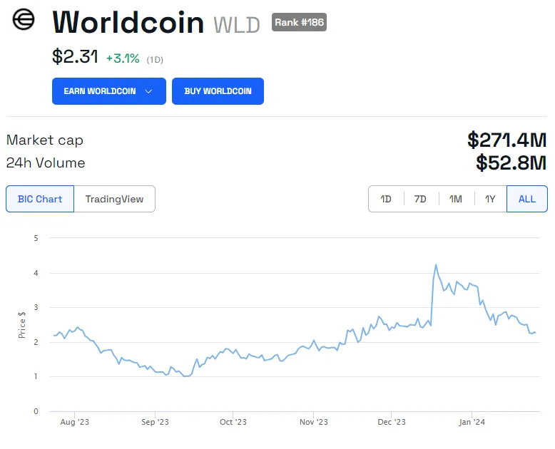 A ascensão do projeto também decorre em grande parte da recompensa dos usuários com criptomoeda WLD por passarem por uma varredura de íris. Os relatórios afirmam que uma recompensa de 25 WLD está sendo oferecida para cada pessoa que fizer a varredura.
