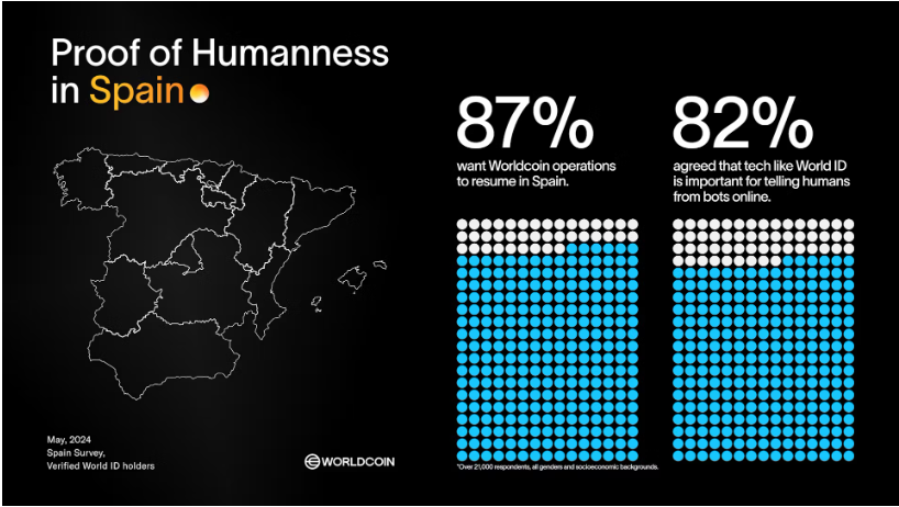 A Tools for Humanity (TFH), contribuinte da Worldcoin, realizou uma pesquisa com mais de 21.000 usuários da Worldcoin na Espanha no final de maio por meio do World App. A pesquisa da Worldcoin explorou as percepções dos usuários sobre a Worldcoin, biometria, prova de humanidade e proteção da privacidade de dados.