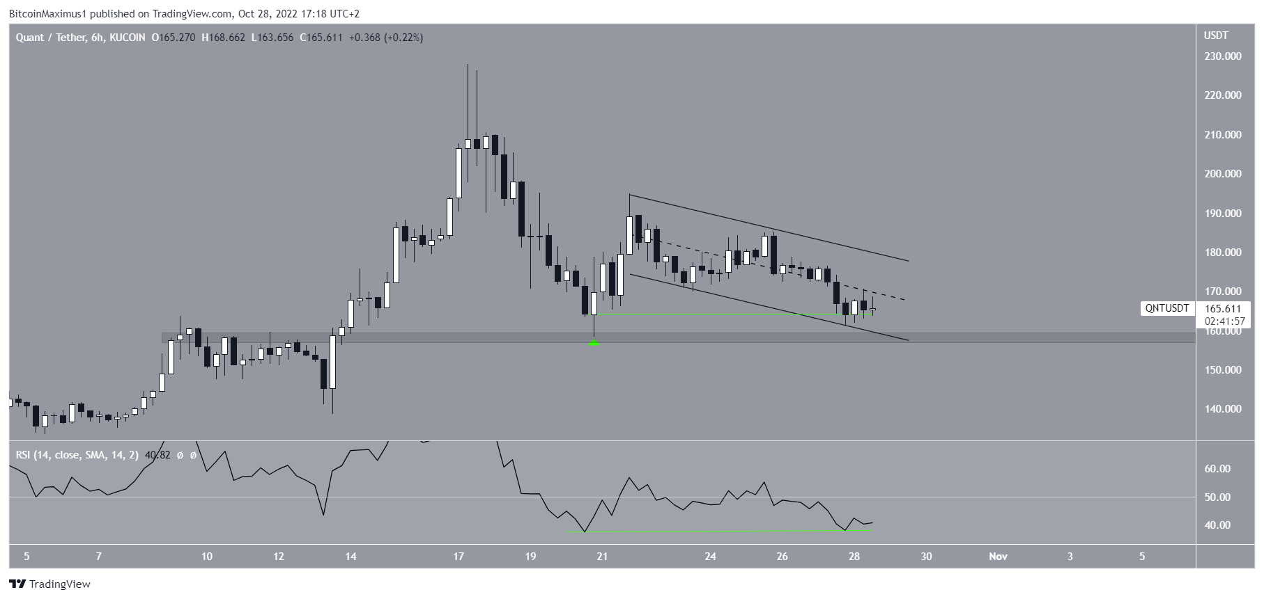 Em 20 de outubro, o QNT saltou na área de suporte horizontal de US$ 158 e alcançou uma alta de US$ 194,880 no dia seguinte. O preço vem caindo dentro de um canal paralelo de baixa desde então.
