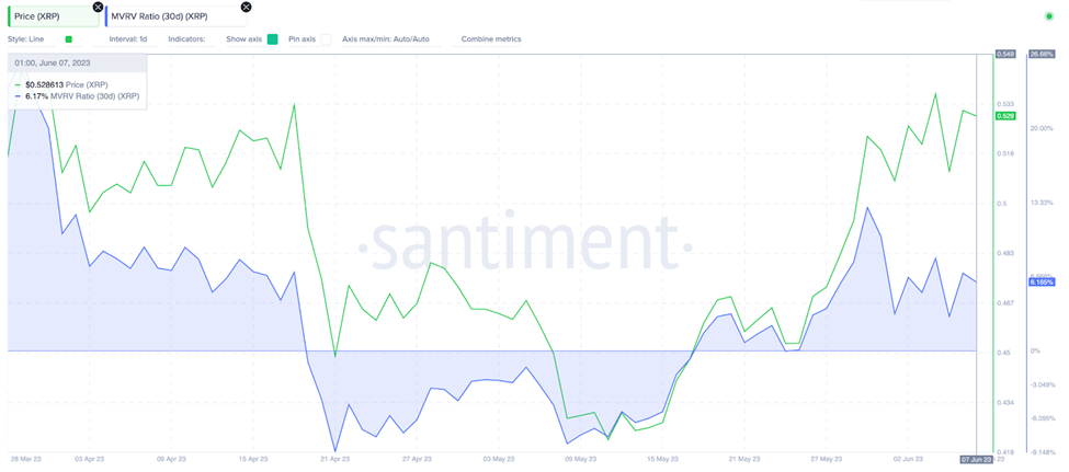 SponsoredDe acordo com os dados de valor de mercado para valor realizado (MVRV) da Santiment, a maioria dos investidores em criptomoedas que compraram XRP no mês passado estão com lucros não realizados de cerca de 7%.