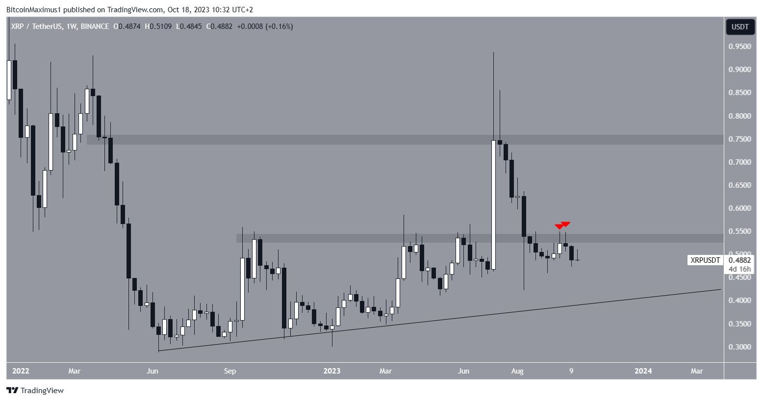 Sponsored SponsoredNa semana passada, a queda foi retomada. O XRP segue uma linha de tendência de alta de longo prazo desde junho de 2022.