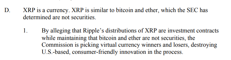 Em uma réplica, o CEO da Ripple disse que a SEC estava errada tanto sobre os fatos quanto sobre a aplicação da lei. Um documento divulgado pela Ripple afirmou que o token XRP foi feito para ser usado como uma moeda funcional, semelhante ao Bitcoin.