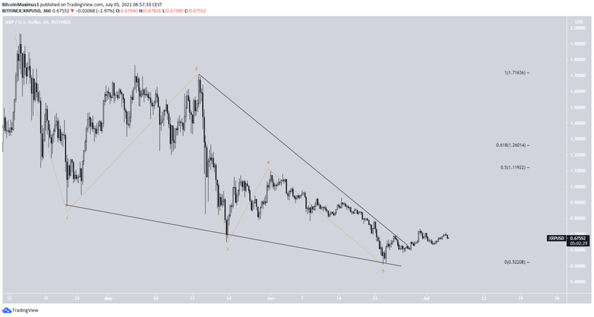 O XRP está em queda desde que atingiu uma máxima de US$ 1,94 no dia 14 de abril. O movimento de baixa continuou até que uma mínima de US$ 0,51 foi atingida no dia 22 de junho.