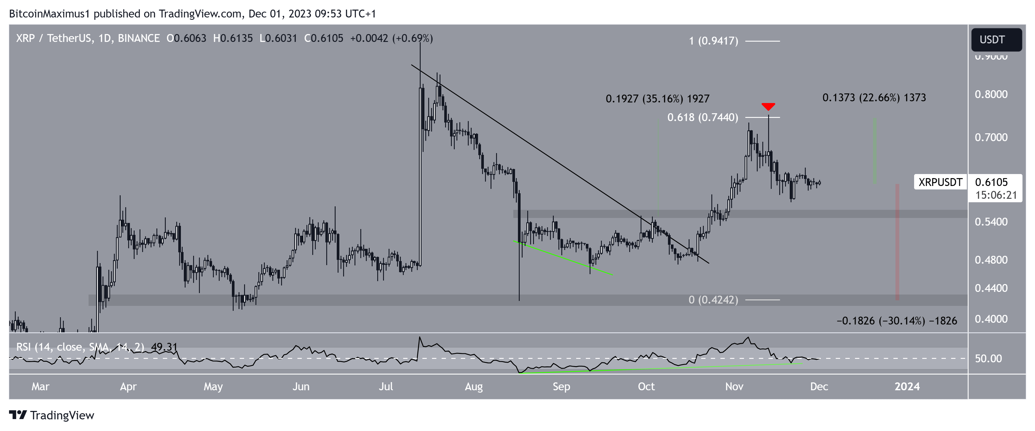 O XRP está em tendência de baixa desde 13 de julho, criando um fundo mais baixo que o anterior em 13 de novembro.