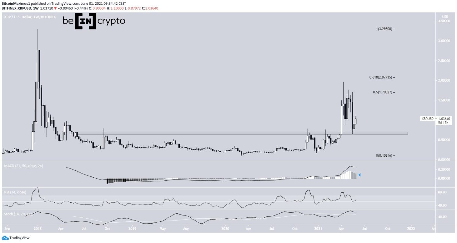 Antes da grande alta de março, a XRP estava sendo negociada abaixo desse nível desde abril de 2018. Portanto, o preço acumulou por cerca de três anos antes de romper e agora voltou a ele para validar a área como suporte.
