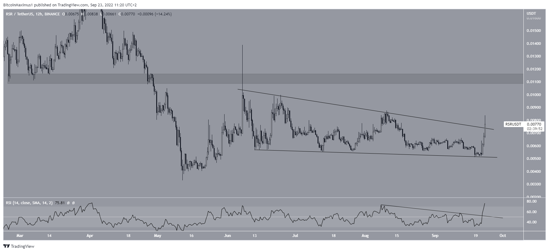 A RSR iniciou um movimento ascendente em 11 de setembro e está atualmente em processo de sair da cunha.